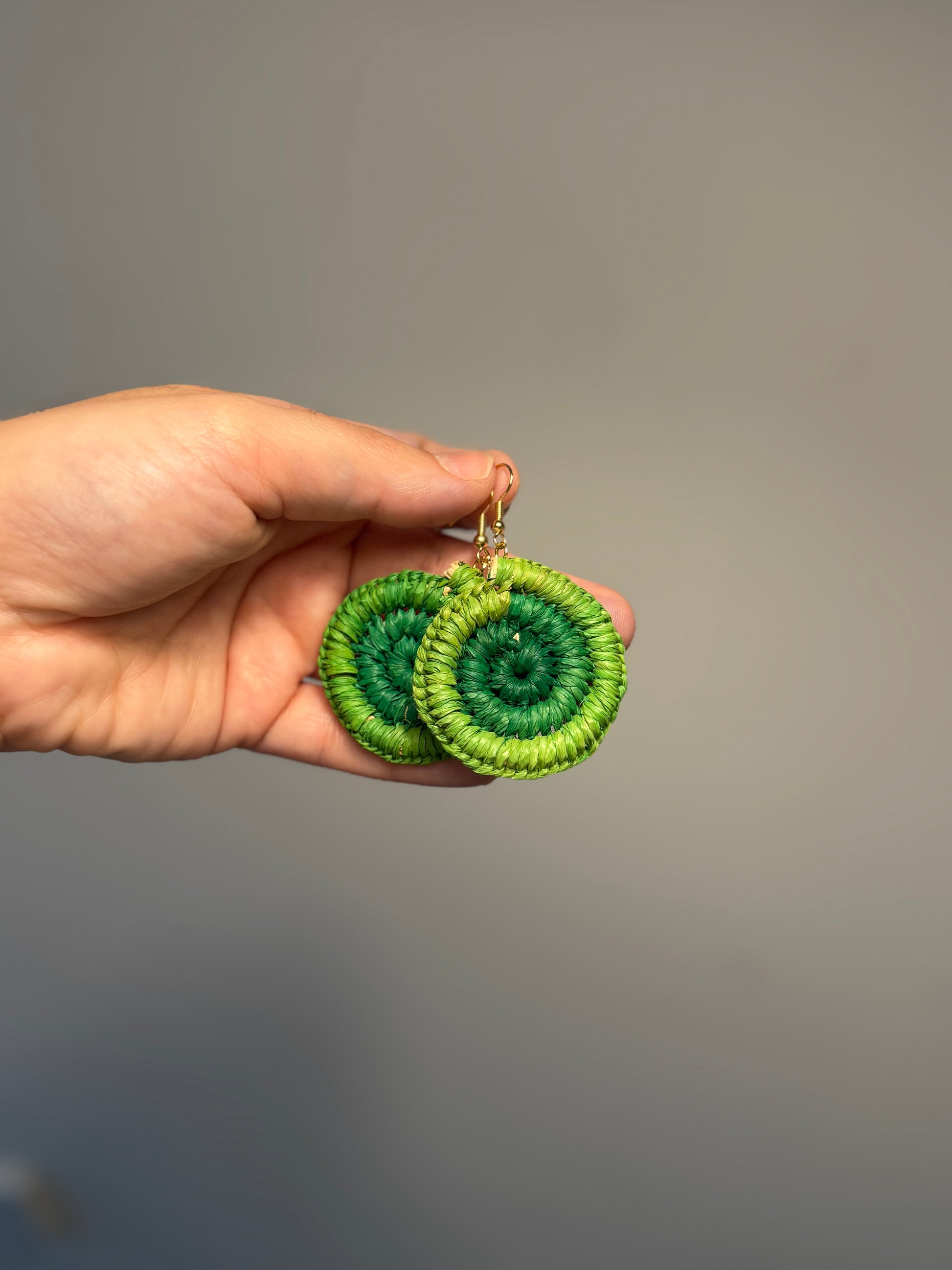 As our earrings are hand woven, sizing, shape and colour may differ from each pair due to Raffia strands not being identical. The raffia used to create each piece has been hand dyed and may vary in colour.